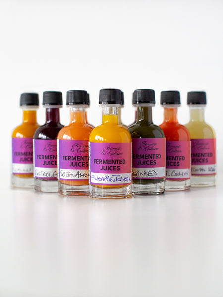 A brand new and exciting way to enjoy the benefits of fermented fresh fruit and vegetables! These savoury juices are naturally extracted during the lacto-fermentation process. Full of flavour and culinary versatility. This is for a mixed "lucky dip" pack of 6 mixed-flavour 50ml bottles. Also available in single 50ml bottles.